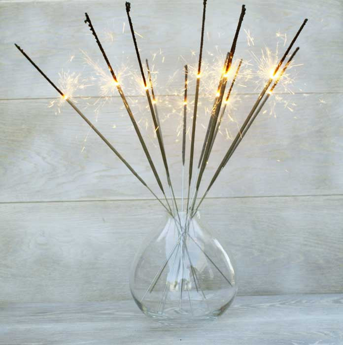 SKU: 371860Are you planning an evening wedding and looking for the perfect bride and groom send off? Or, perhaps you’re in charge of the fireworks at the neighborhood 4th of July Block Party and want to find a way for everyone to be involved in the show. Our 17” sparklers are the ideal solution for putting that extra special glow into any holiday or occasion. With a burn time of approximately 80 seconds, these smokeless sparklers can make ringing in the New Year a dazzling experience for all partygoers.